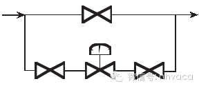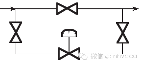 ③安裝地點應便于維修,并設有旁路如圖2所示,圖2中兩個切斷閥門與調節閥安裝在一跟管線上,缺點是難于裝卸,占用空間大。圖3安裝方式布置比較緊湊、占空間小,便于裝卸。